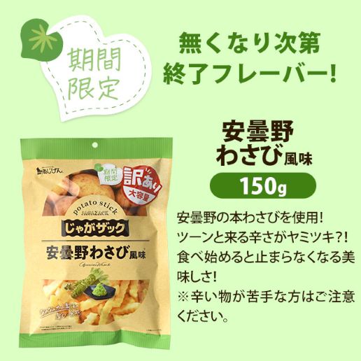至福のうま塩味ポテトスティック(じゃがいも(中国)、植物油)、至福のうま塩シーズニング/調味料(アミノ酸等)、リン酸Ca、甘味料(ステビア)、(一部に豚肉を含む) チーズ&黒胡椒味ポテトスティック(じゃがいも(中国)、植物油)、チーズシーズニング、食塩、ブラックペッパー/調味料(アミノ酸等)、香料、甘味料(甘草、ステビア)、パプリカ色素、(一部に乳成分・小麦・大豆・鶏肉を含む) 九州しょうゆ風味ポテトスティック(じゃがいも(中国)、植物油)、食塩、甘辛しょうゆシーズニング、砂糖、鰹節粉末、酵母エキス、鯖節粉末、粉末しょうゆ、昆布粉末、椎茸粉末、鰹節エキス/調味料(アミノ酸等)、甘味料(スクラロース)、リン酸Ca、(一部に小麦・大豆・さばを含む) 紀州の南高梅味ポテトスティック(じゃがいも(中国)、植物油)、南高梅シーズニング、甘辛しょうゆシーズニング/クエン酸、調味料(アミノ酸等)、香料、リン酸Ca、甘味料(スクラロース)、(一部に小麦・大豆を含む) 安曇野わさび味ポテトスティック(じゃがいも(中国)、植物油)、うま塩シーズニング、わさび風味パウダー(デキストリン、本わさび葉(安曇野産))/調味料(アミノ酸)、香料、香辛料抽出物、(一部に鶏肉を含む) |
